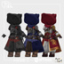 - ポリゴン数: 37311 - マテリアル: 2個(+カラバリ2種類分付属) - テクスチャ: 10枚(+カラバリ2種類分付属) - AnimationClip: 8個 - 改変用モデルデータ: (Unityパッケージ内にFBX含む) - 改変用テクスチャデータ: .png / .psd 衣装の切り替え及び武器のハンドリングに、ModularAvatarを使用しています。 ModularAvatarを使用せずに導入した場合の動作は保証できません。